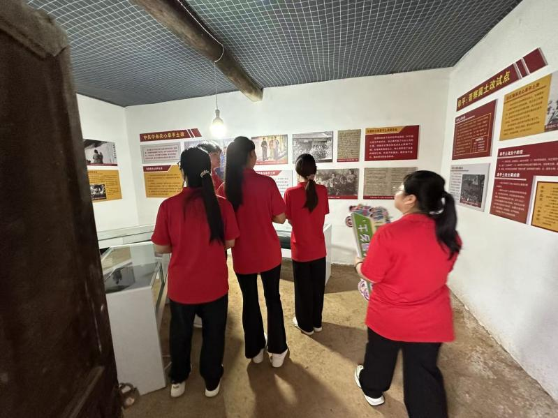 土改小院的泥墙仍留存着时代的刻痕,墙上褪色的"耕者有其田"标语,墙角堆放的旧农具,玻璃柜里泛黄的土地分配账本,都在诉说着那段土地归心的岁月。这些带着烟火气的细节,让队员们读懂:当土地真正属于农民,迸发的不仅是生产力,更是民心向党的滚烫真情。正这呼应习近平总书记“思政课要以革命文化为力量根基”的指示,让“人民至上”的道理在历史遗存中讲深讲透。