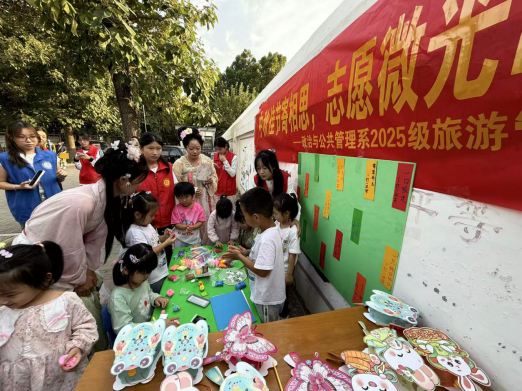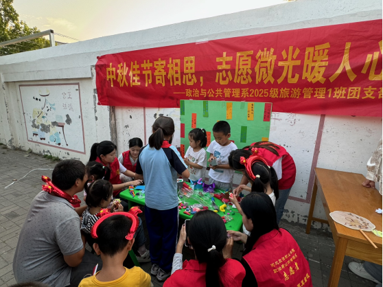 恰逢中秋佳节,2025级旅游管理1班团支部以“中秋佳节寄相思 志愿微光暖人心”为主题,在杜北街道经贸社区广场开展中秋文化活动,旨在搭建邻里互动平台、打破邻里陌生感、助力和谐社区建设。