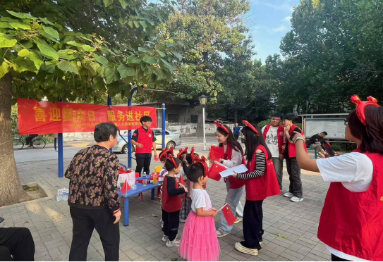 活动中,志愿者针对不同群体设计差异化互动内容:倾听社区老者讲述奋斗故事,结合国家发展历程,生动讲解我国 “站起来、富起来、强起来” 的历史跨越,帮助学生进一步增强安全感与国家认同感;面向社区孩童,开展国庆知识问答互动,通过 “国庆节是哪一天”“国旗的含义是什么” 等基础问题,播撒爱国种子,对回答正确的孩子赠送小礼品,激发其参与热情。